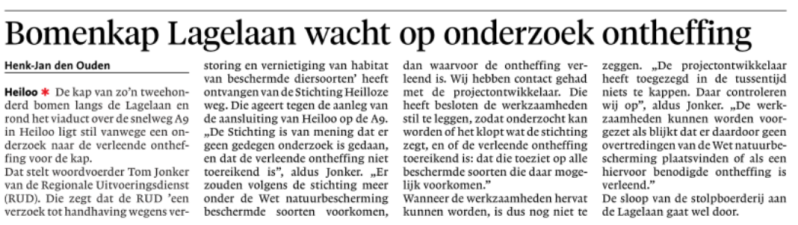 Bomenkap Lagelaan wacht op onderzoek ontheffing