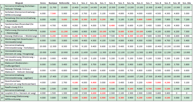 Vanuit enkele vertegenwoordigers is de vraag gekomen om de gedetailleerde modelplots van de verschillende scenario’s toegestuurd te krijgen. Dit zijn kaartbeelden met daarop de intensiteiten van alle wegen die in het verkeersmodel zijn opgenomen. Bij de vorige sessie in november 2016 hebben we deze wel meegestuurd. Wij hebben deze kaartbeelden bewust (nog) niet meegestuurd omdat onze ervaring is dat verschillende deelnemers hierdoor té gedetailleerd inzoomen op specifieke locaties. Dit terwijl we juist eerst de resultaten van de berekeningen willen toelichten en de hoofdlijnen met de Maatschappelijke Denktank willen bespreken. Daarbij vermelden we nogmaals dat het verkeersmodel een heel geschikt middel is om het effect van maatregelen op de verkeersstromen op de hoofdstructuur in beeld te brengen, maar zich er minder voor leent om op een hoog detailniveau in te zoomen.